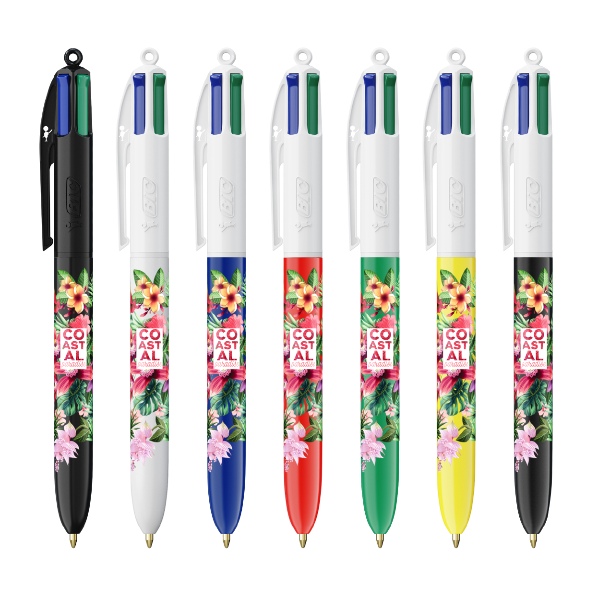 Le célèbre BIC® 4 Couleurs, décliné dans les teintes iconiques de la marque et disponible en 7 coloris différents.