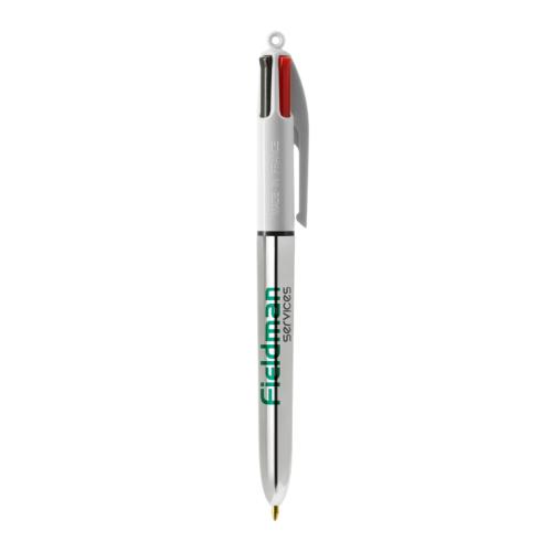 Le célèbre BIC® 4 couleurs, icône de la marque, présenté dans des couleurs métallisées brillantes. Disponible dans 4 couleurs d’encre standard : bleu, noir, rouge et vert.