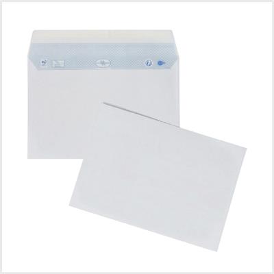 Enveloppes blanches auto-adhésives avec bande de protection pour une garantie de fermeture et une durablilité maximale même en cas de stockage prolongé. Compatible avec les impressions laser et jet d'encre.