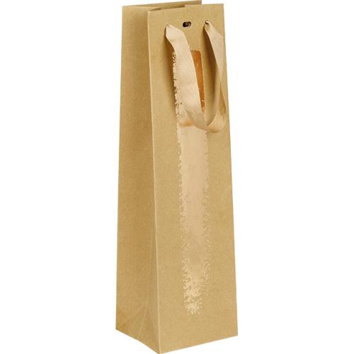 Sac papier 1 bouteille kraft/or poignées ruban/oeillet de fermeture 11 x 9 x 39