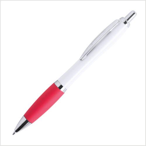 Stylo TINKIN à bille bicolore, avec un corps en blanc et le grip de couleurs. Mécanisme à bouton-poussoir, avec détails chromés et clip en métal. Environ 600 mètres d'écriture.